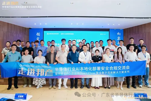 2026年3月31日,由邦彦技术股份有限公司与广东省半导体行业协会联合主办,日立数据管理(中国)有限公司、深圳市连用科技有限公司、深圳工顺数智科技有限公司协办的《走进邦彦》——半导体行业AI本地化部署安全合规交流会暨邦彦云PC企业级Open Claw安全数字底座解决方案发布会在深圳龙岗邦彦绿谷工业园区成功举办。本次活动汇聚了半导体行业领军者、企业决策人、CIO及数据安全负责人近百名嘉宾,共同探讨AI时代半导体产业的安全合规与高效发展之道。